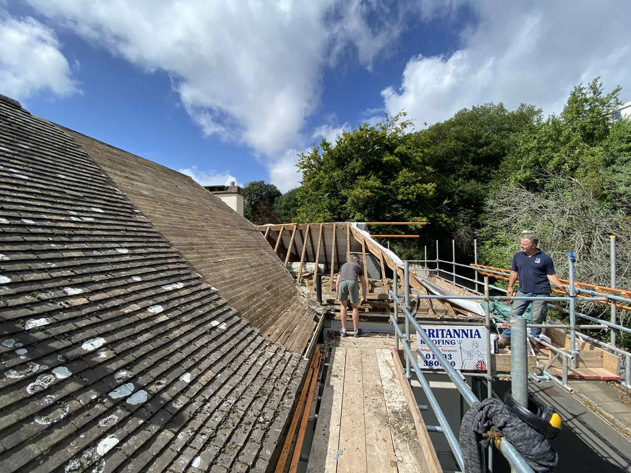 Britannia Roofing employ professional, experienced joiners and carpenters to undertake most types of roofing woodwork. This includes the construction of timber A Frames, installation of roof lights and windows, and baton work. If you are looking to have a new pitched roof constructed, rest assured we can complete the whole job.